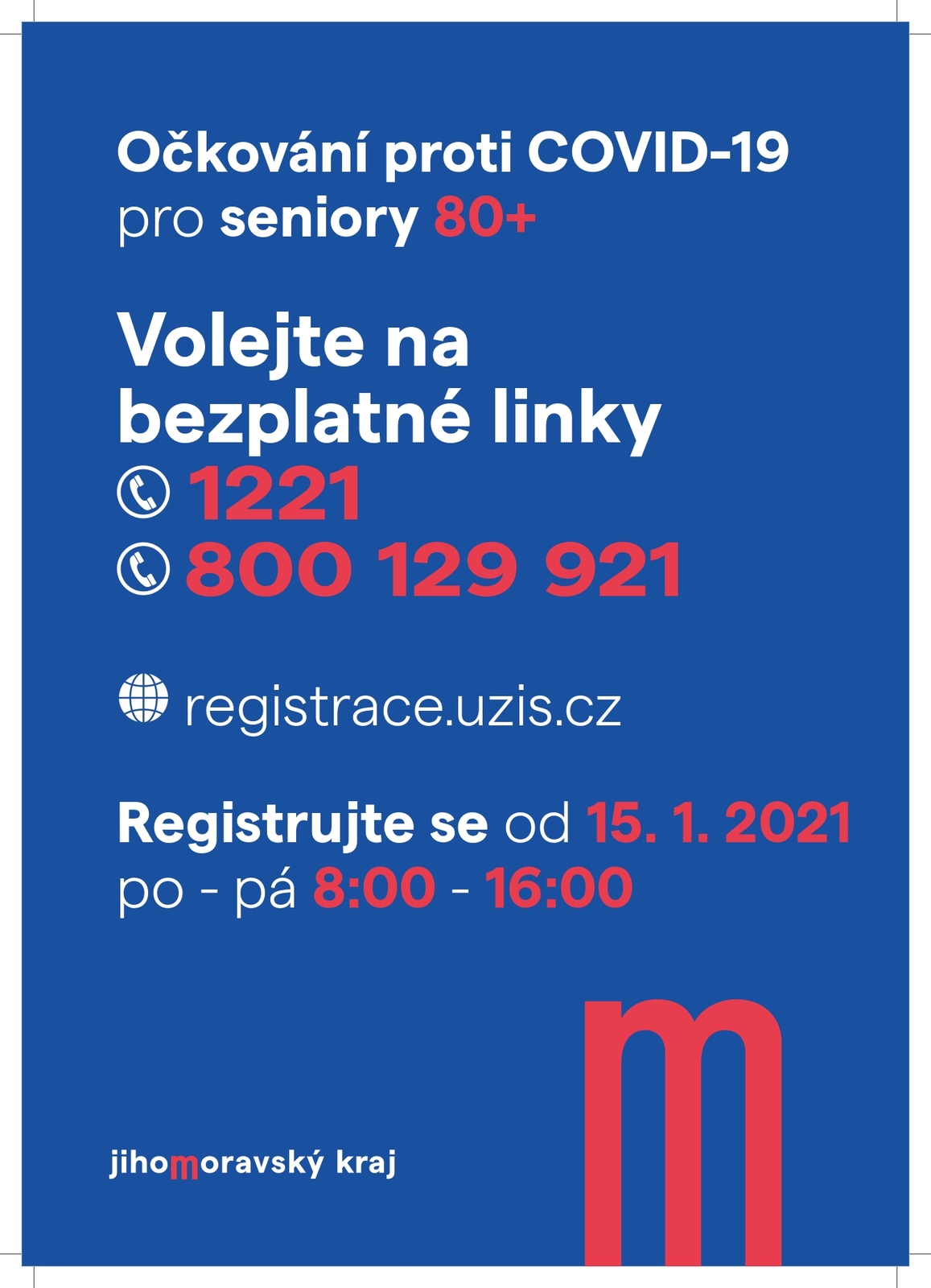 Registrujte se od 15. 1. 2021 po-pá 8:00 - 16:00