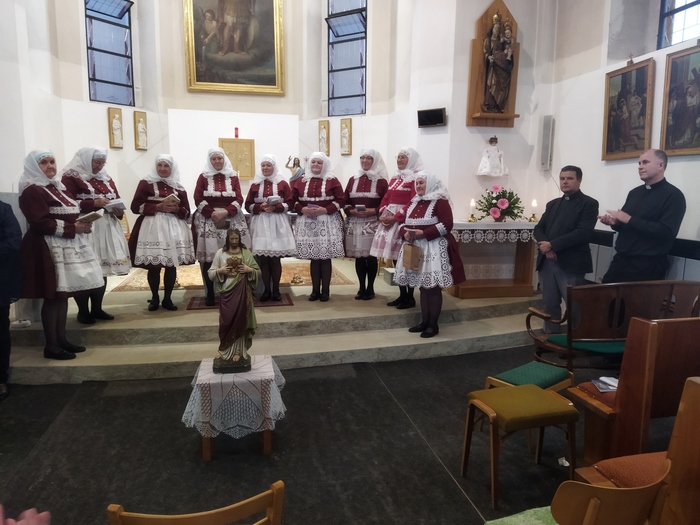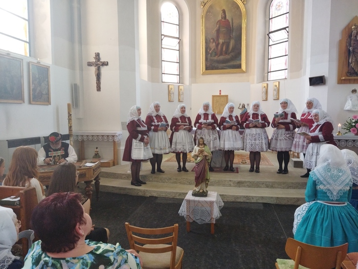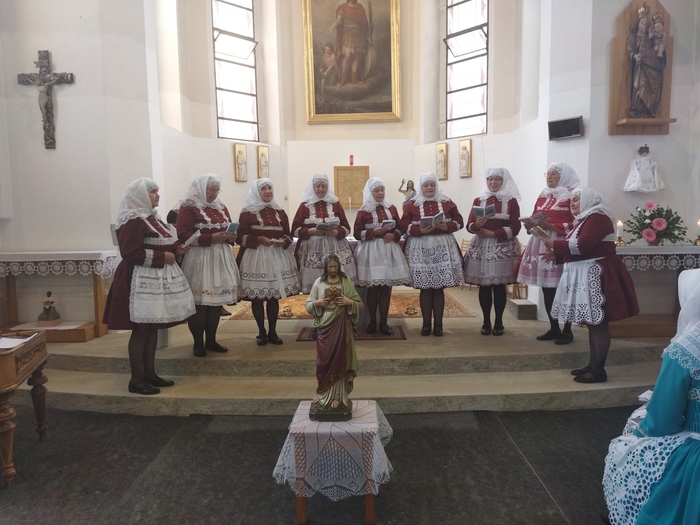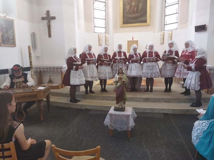 Duchovní písně a loretánské litanie zazpívaly sestry Bohdana Menšíková a Jana Neničková, ženský sbor Tetky z Kyjova za doprovodu cimbalisty Jury Petrů,